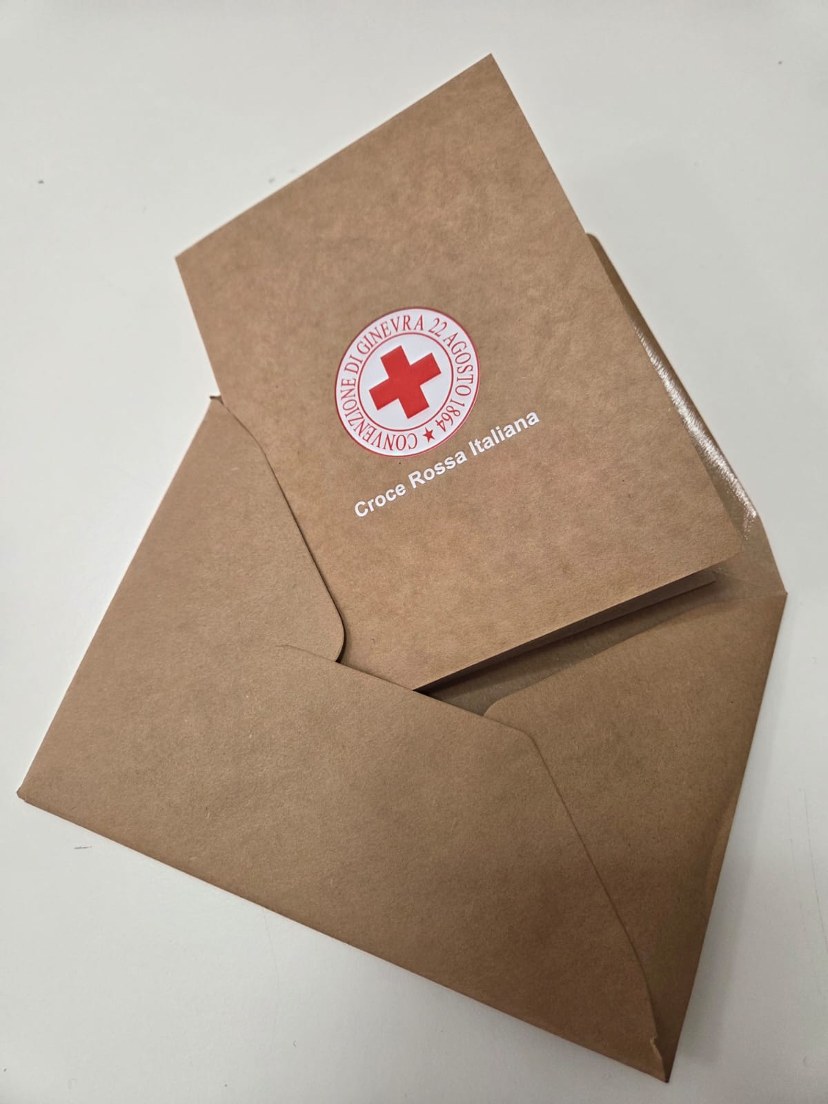 Confezione in carta kraft con emblema Croce Rossa Italiana